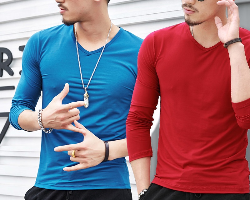 Men's Solid color V-neck Long-Sleeve Premium Casual T-Shirt