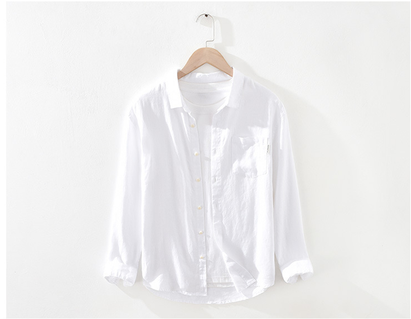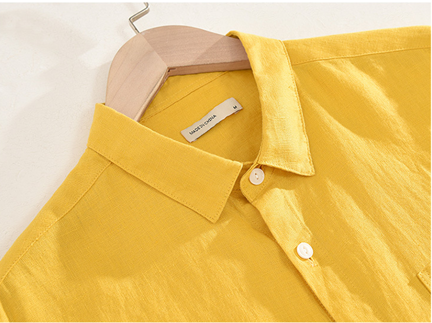 Pure color linen shirt youth loose square collar pocket linen shirt