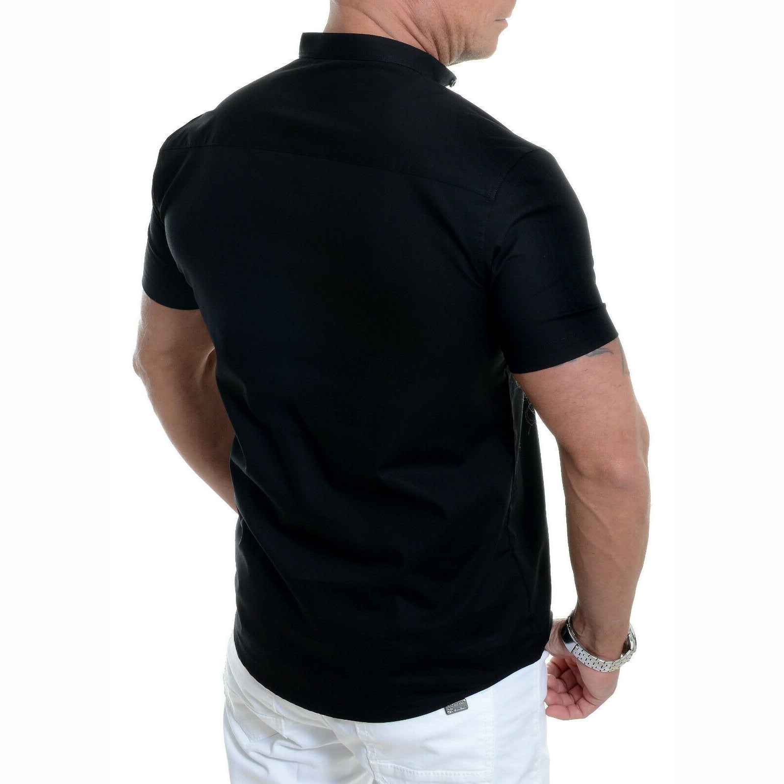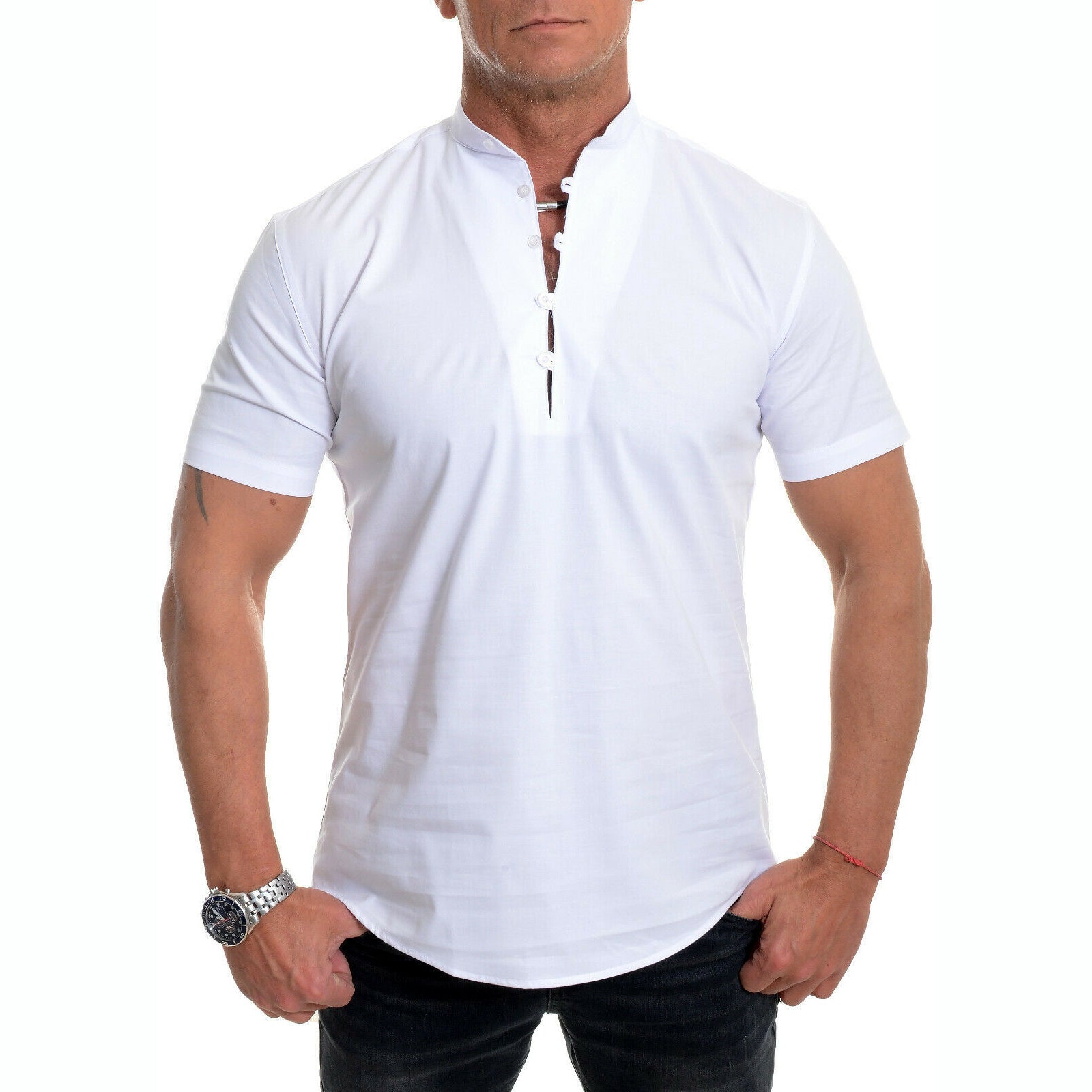 Men's Stand Collar Plain Button Summer Loose Shirt