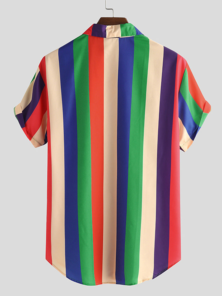 2021 spring and summer lapel single-breasted button plus pocket short-sleeved men's shirt